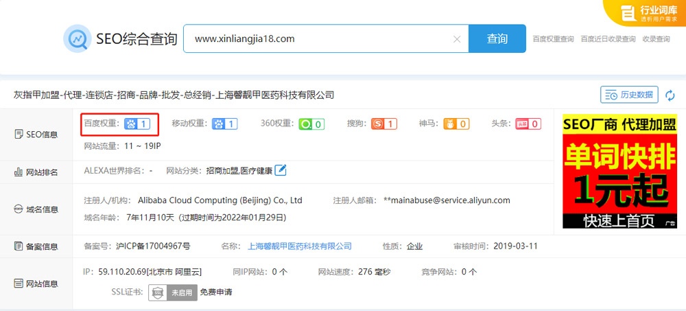 上海馨靚甲醫藥科技有限公司營銷型網站SEO優化案例展示